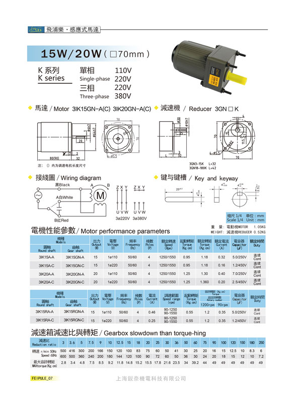 K系列3GN15K感應式馬達15W/20W(70mm)