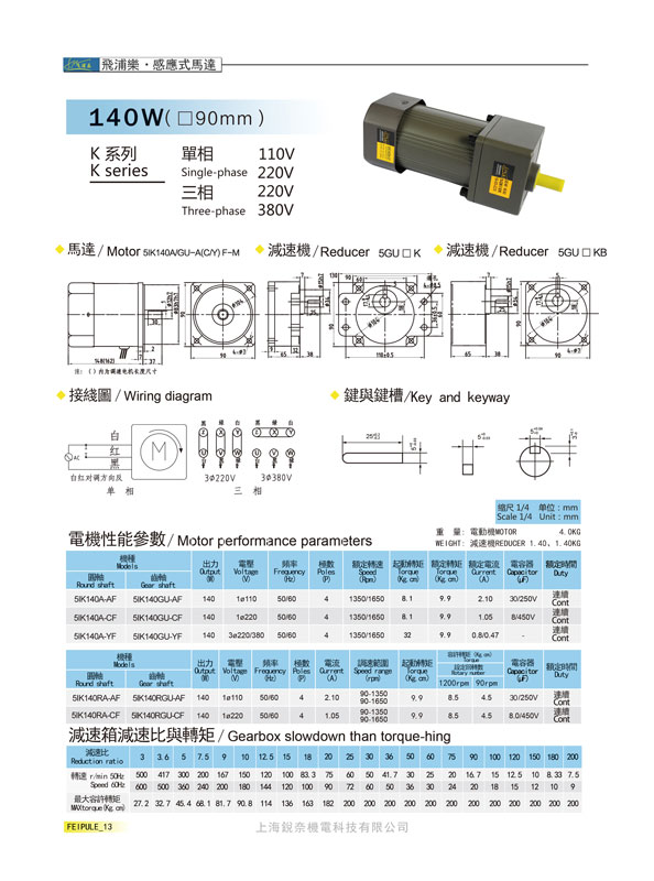 K系列5GN18K感應式馬達140W(90mm)