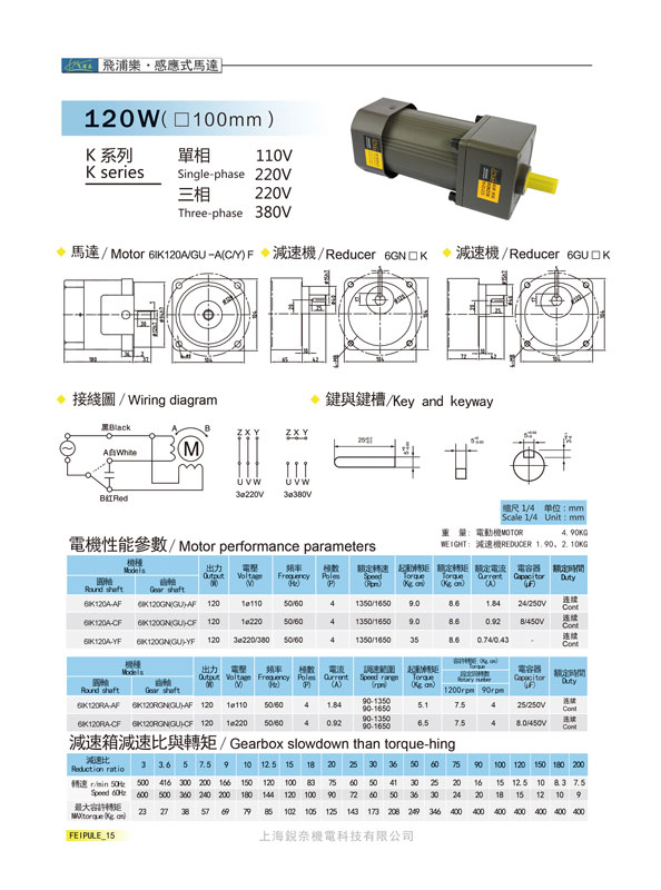 K系列6GN20K感應式馬達120W(100mm)