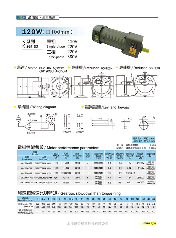K系列6GN120K剎車馬達120W(100mm)