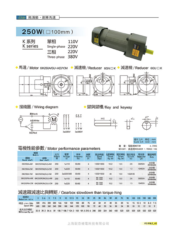 K系列6GN250K剎車馬達250W(100mm)